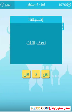 اجابة لغز نصف الثلث من لغز 4 رمضان من لعبة رشفة رمضانية صقور الإبدآع