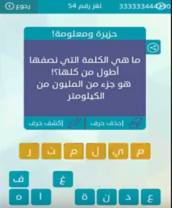 اجابة لغز ما هى الكلمة التى نصفها اطول من كلها هو جزء من المليون من الكليو متر من لعبة وصلة فى صقور الإبدآع