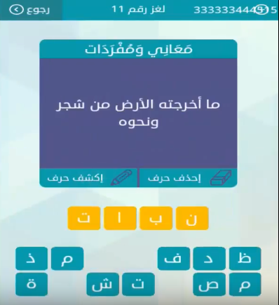 جواب حل ما اخرجته الارض نت شجر و نحوه لغز رقم 11 من لعبة وصلة للمجموعة الثانية صقور الإبدآع