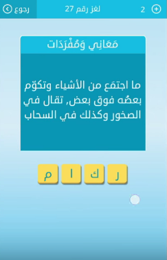 جواب ما اجتمع من الاشياء وتكوم بعضه فوق بعض تقال فى الصخور وكذلك فى السحاب من لعبة رشفة لغز رقم 27 ل صقور الإبدآع
