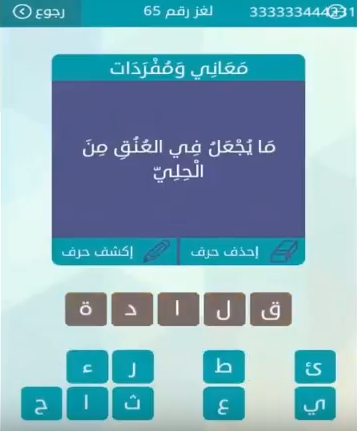 اجابة لغز ما يجعل فى العنق من الحلى من لعبة وصلة للمجموعة الثامنة لغز رقم 65 صقور الإبدآع