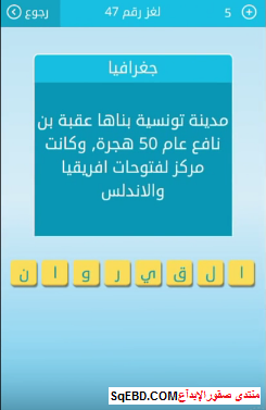 جواب لغز مدينة تونسية بناها عقبة بن نافع عام 50 هجرة وكانت مركز لفتوحات افريقيا والاندلس من اللغز صقور الإبدآع