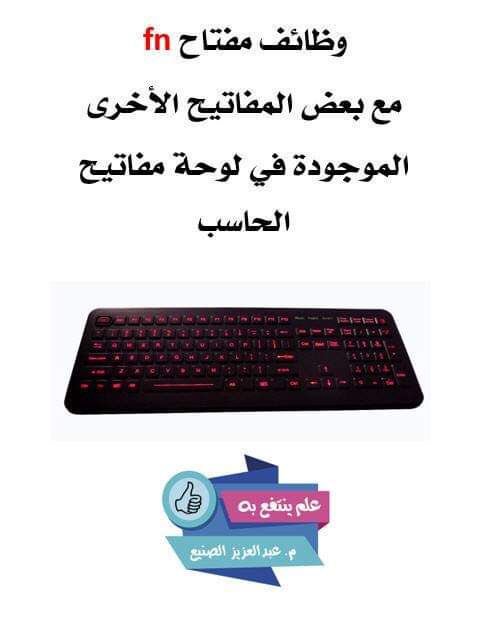 م عبدالعزيز الصنيع Pa Twitter هنالك الكثير من مستخدمي الحاسب لا يعرفون وظيفة مفتاح Fn والموجود ضمن لوحة مفاتيح الحاسب ووظيفتة تختلف من نوع حاسب الى اخر لذا قمت بتجميع وظائفها في