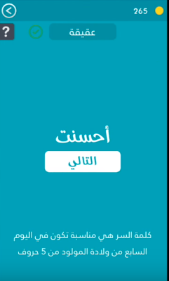 حل هى مناسبة تكون فى اليوم السابع من ولادة المولود من 5 حروف من لعبة كلمة السر 2 صقور الإبدآع
