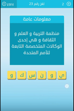 جواب لغز منظمة التربية والعلم والثقافة وهى احدى الوكالات المتخصصة التابعة للامم المتحدة من لعبة ر صقور الإبدآع