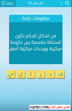 حل من اشكال الحكم تكون السلطة مقسمة بين حكومة مركزية ووحدات مركزية اصغر من لعبة رشفة لغز رقم 33 صقور الإبدآع