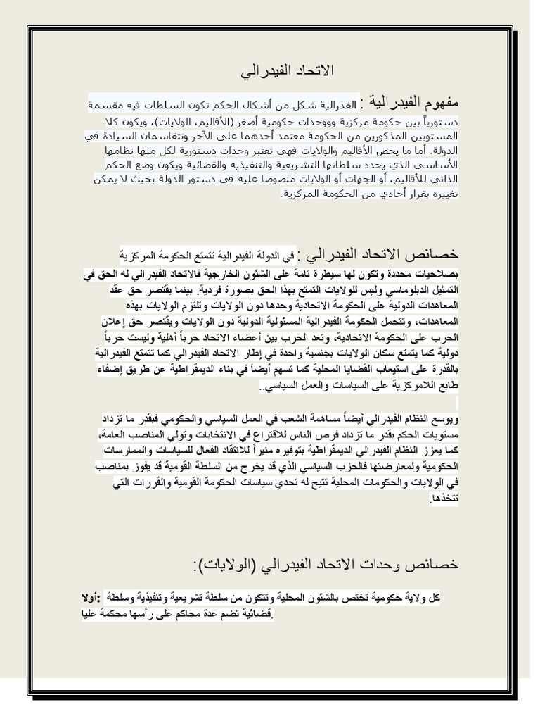 من اشكال الحكم تكون السلطة مقسمة بين حكومة مركزية