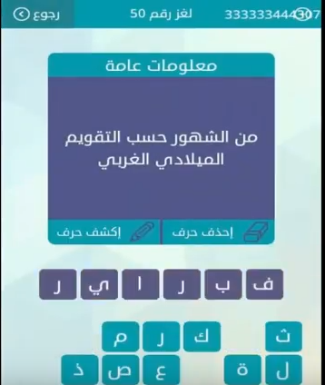 جواب لغز من الشهور حسب التقويم الميلادى الغربى لغز رقم 50 من لعبة وصلة فى المجموعة السادسة صقور الإبدآع