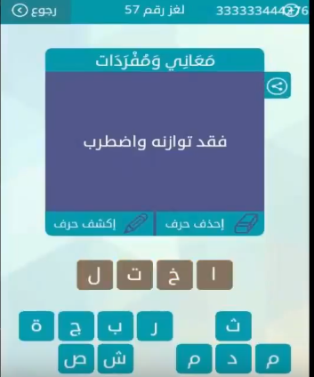 حل لغز فقد توازنه واضطرب من لعبة وصلة المجموعة السابعة لغز رقم 57 صقور الإبدآع