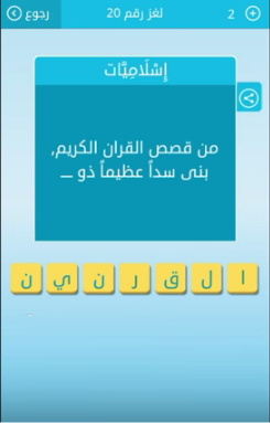 جواب سؤال من قصص القران الكريم بنى سدا عظيما ذو من لعبة رشفة لغز رقم 20 للمجموعة الثالثة صقور الإبدآع