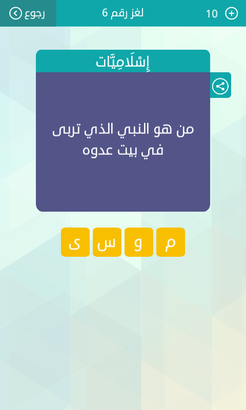 حل اسلاميات من هو النبي الذي تربى في بيت عدوه لغز رقم 6 من لعبة وصلة من المجموعة الاولى صقور الإبدآع