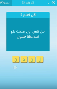 إجابة لغز من هى اول مدينة بلغ تعدادها مليون من لعبة رشفة لغز رقم 23 للمجموعة الثالثة دهشة Daahsha
