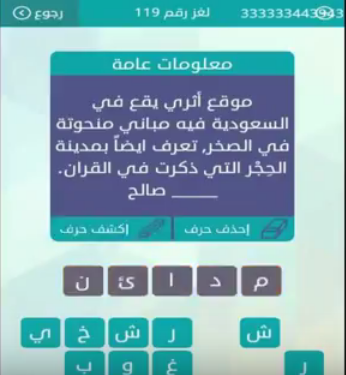حل موقع اترى يقع فى السعودية فيه مبانى منحوتة فى الصخر تعرف ايضا بمدينة الحجر التى ذكرت فى القران صقور الإبدآع