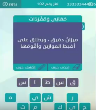 جواب سؤال ميزان دقيق ويطلق على اضبط الموازين واقومها من لعبة وصلة المجموعة الثانية عشرة لغز رقم صقور الإبدآع