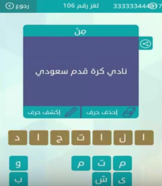 اجابة سؤال نادى كرة قدم سعودى من لعبة وصلة لغز رقم 106 للمجموعة الثانية عشرة صقور الإبدآع