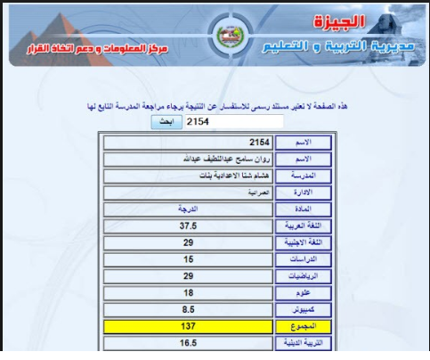 استخراج نتيجة الصف الثالث الإعدادي 2019 محافظة الجيزة برقم الجلوس نتيجة الشهادة الإعدادية القاهرة الترم الأول مديرية التربية والتعليم