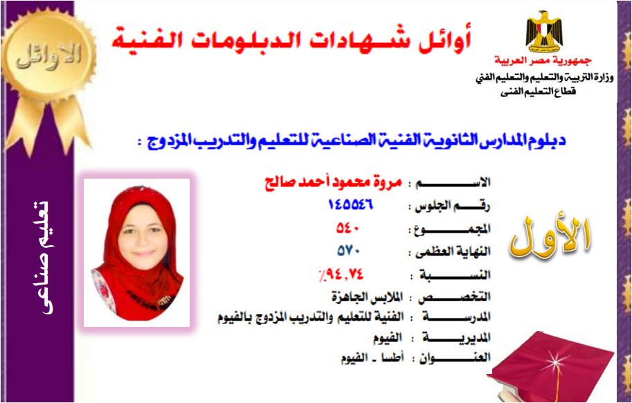 بالصور والاسماء اوائل التعليم الصنـاعى 2017 الدبلومات الفنيه