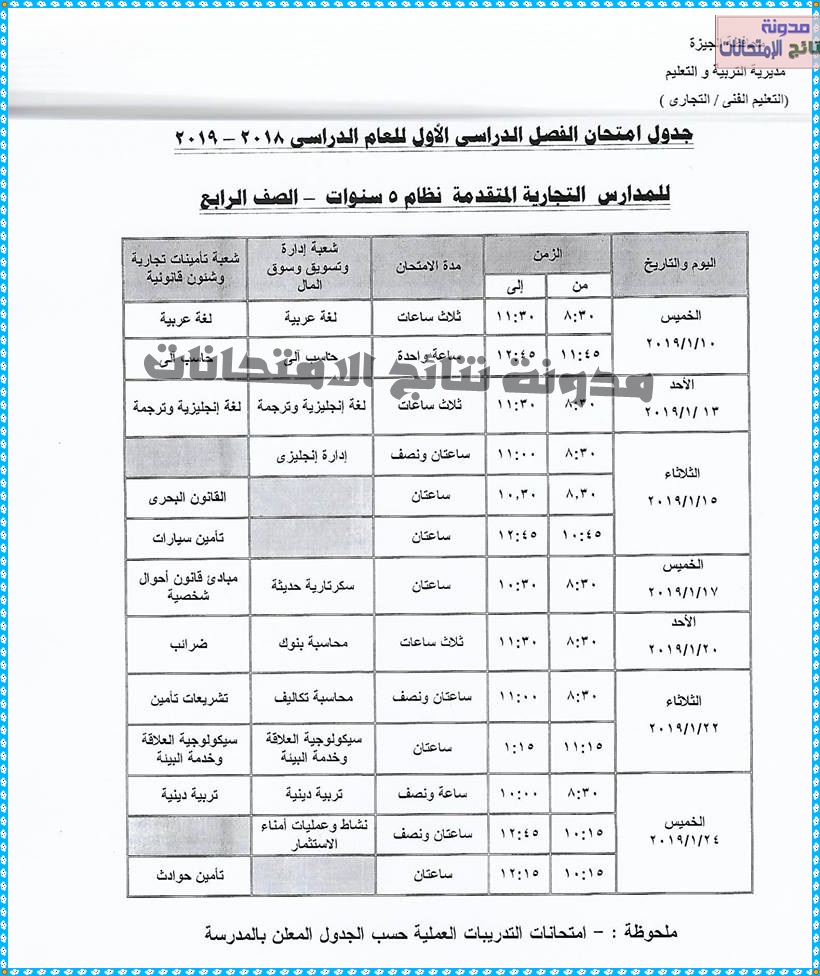 جدول امتحانات التيرم الاول للفنى الزراعى 2017 2018 محافظة الغربية صباح مصر