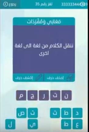 اجابة لغز نقل الكلام من لغة الى اخرى لغز رقم 38 للمجموعة الخامسة من لعبة رشفة صقور الإبدآع