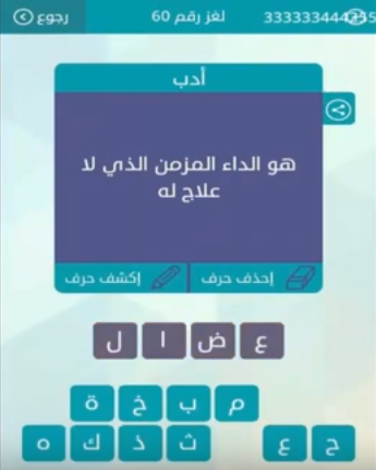 جواب سؤال هو الداء المزمن الذى لا علاج له لغز رقم 60 من لعبة وصلة للمجموعة السابعة صقور الإبدآع