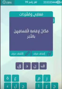 اجابة لغز مكان لاقامة المسافرين بالاجر من لعبة وصلة المجموعة الحادية عشرة لغز رقم 99 صقور الإبدآع