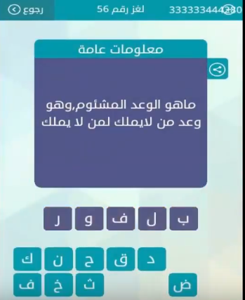 جواب لغز ما هو الوعد المشئوم وهو وعد من لا يملك لمن لا يملكمن لعبة وصلة المجموعة السابعة لغز رقم 5 صقور الإبدآع