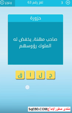 اجابة لغز صاحب مهنة يخفض له الملوك رؤوسهم لغز رقم 63 للمجموعة السابعة من لعبة رشفة صقور الإبدآع