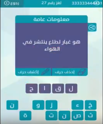 اجابة لغز هو غبار لطلع ينتشر فى الهواء من لعبة وصلة للمجموعة الثالثة لغز رقم 27 صقور الإبدآع