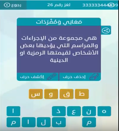 جواب هى مجموعة من الاجراءات والمراسم التى يؤديها بعض الاشخاص لقيمتها الرمزية او الدينية لغز رقم 2 صقور الإبدآع
