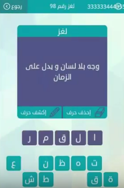 اجابة سؤال وجه بلا لسان ويدل على الزمان من لعبة وصلة المجموعة الحادية عشرة لغز رقم 98 صقور الإبدآع