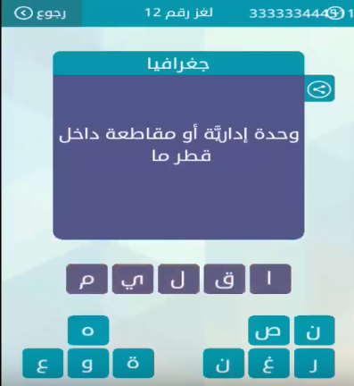اجابة سؤال وحدة ادارية او مقاطعة داخل قطرها لغز رقم 12 من لعبة وصلة للمجموعة الثانية صقور الإبدآع