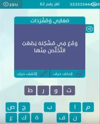 وقع في مشكلة يصعب التخلص منها جواب لغز لعبة وصلة رقم ٦٢ غرور وكبرياء