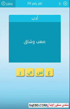جواب لغز صعب وشاق لغز رقم 59 للمجموعة السابعة من لعبة رشفة صقور الإبدآع