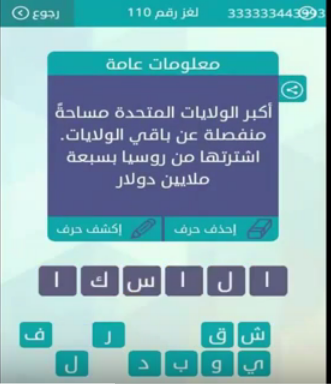 حل هى ولاية اشترتها الولايات المتحدة من روسيا ومكون من 6 حروف اجابة اللغز 64 من لعبة كلمة السر منتديات حب البنات
