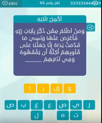جواب ومن اظلم ممن ذكر بايات ربه فاعرض عنها ونسى ما قدمت يداه انا جعلنا على قلوبكم اكنة ان يمهوه وفى صقور الإبدآع
