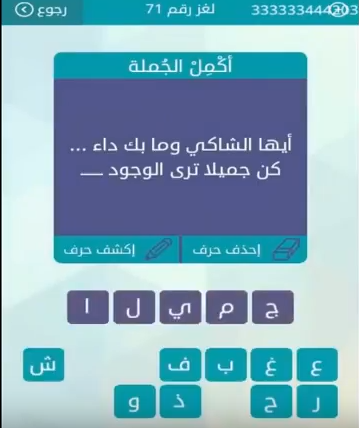 اجابة سؤال ايها الشاكى وما بك جاء كن جميلا ترى الوجود من لعبة وصلة المجموعة الثامنة لغز رقم صقور الإبدآع