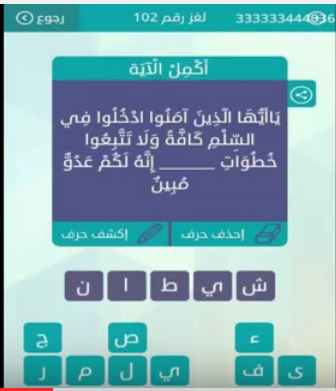 جواب يا ايها الذين آمنوا ادخلوا السلم كافة ولا تتبعوا خطوات انه لكم عدو مبين من لعبة وصلة المجموعة صقور الإبدآع